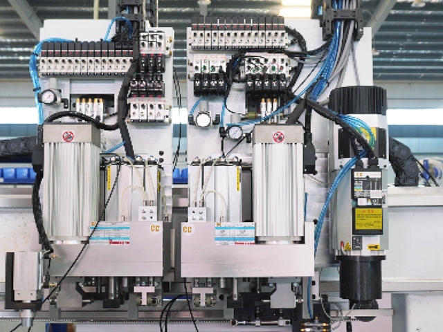 3. Grâce à un rail de guidage long à double pince, le système atteint une vitesse de préhension maximale de 130 m/min. La détection intelligente de la position des trous évite efficacement les erreurs de perçage, réduisant ainsi le temps de changement d'outil pendant le perçage. La course de la pince dépasse 4,5 mètres, permettant la préhension et le traitement en une seule opération de grands panneaux, ce qui raccourcit considérablement le temps de perçage des grands panneaux latéraux d'armoires.