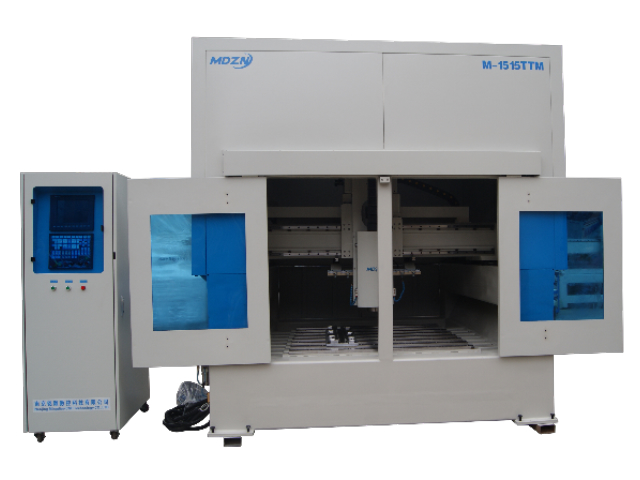 Le Machine à profiler M-1515TTM Cette machine est dotée d'un système de lubrification centralisé et automatique pour tous les composants de la transmission, prolongeant ainsi leur durée de vie. Elle possède deux chambres d'usinage, une à gauche et une à droite. L'axe Y utilise une transmission par engrenages et crémaillère de haute précision d'origine allemande, tandis que les axes X et Z utilisent des vis à billes rectifiées pour une entrée d'outil précise et rapide. Les axes X, Y et Z sont équipés de guidages taïwanais d'origine ; les guidages carrés présentent l'avantage d'être adaptés à certaines applications, répondant aux exigences de haute rigidité et de charges élevées.